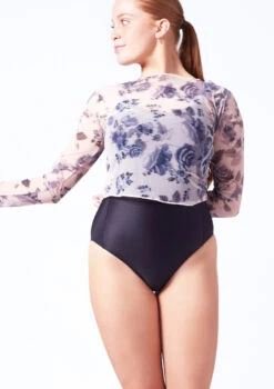 Layering just got easier! This elegant long sleeve mesh top is perfect to add over your leotard for class. Finished with a delicate floral print. This item is sheer mesh.