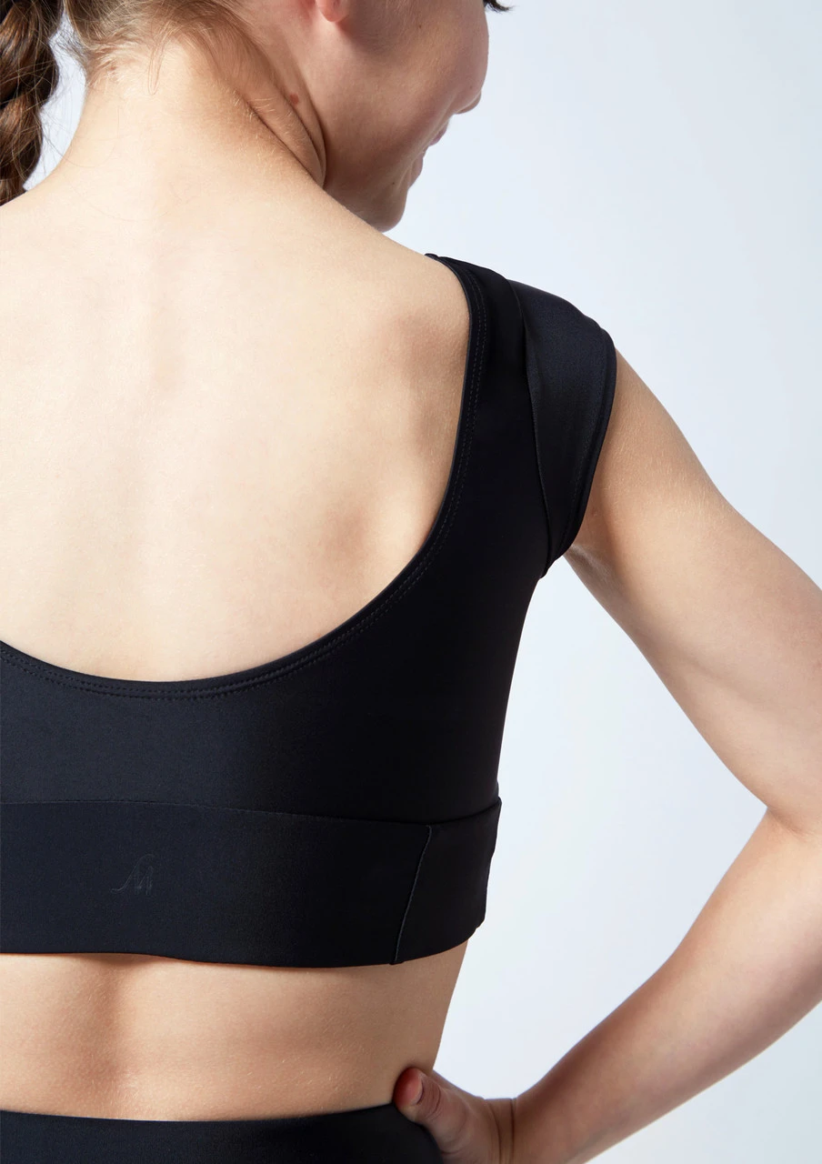 Stay stylish for class in this cap sleeve crop top with a flattering low back. Pair with matching briefs or shorts for a complete look.