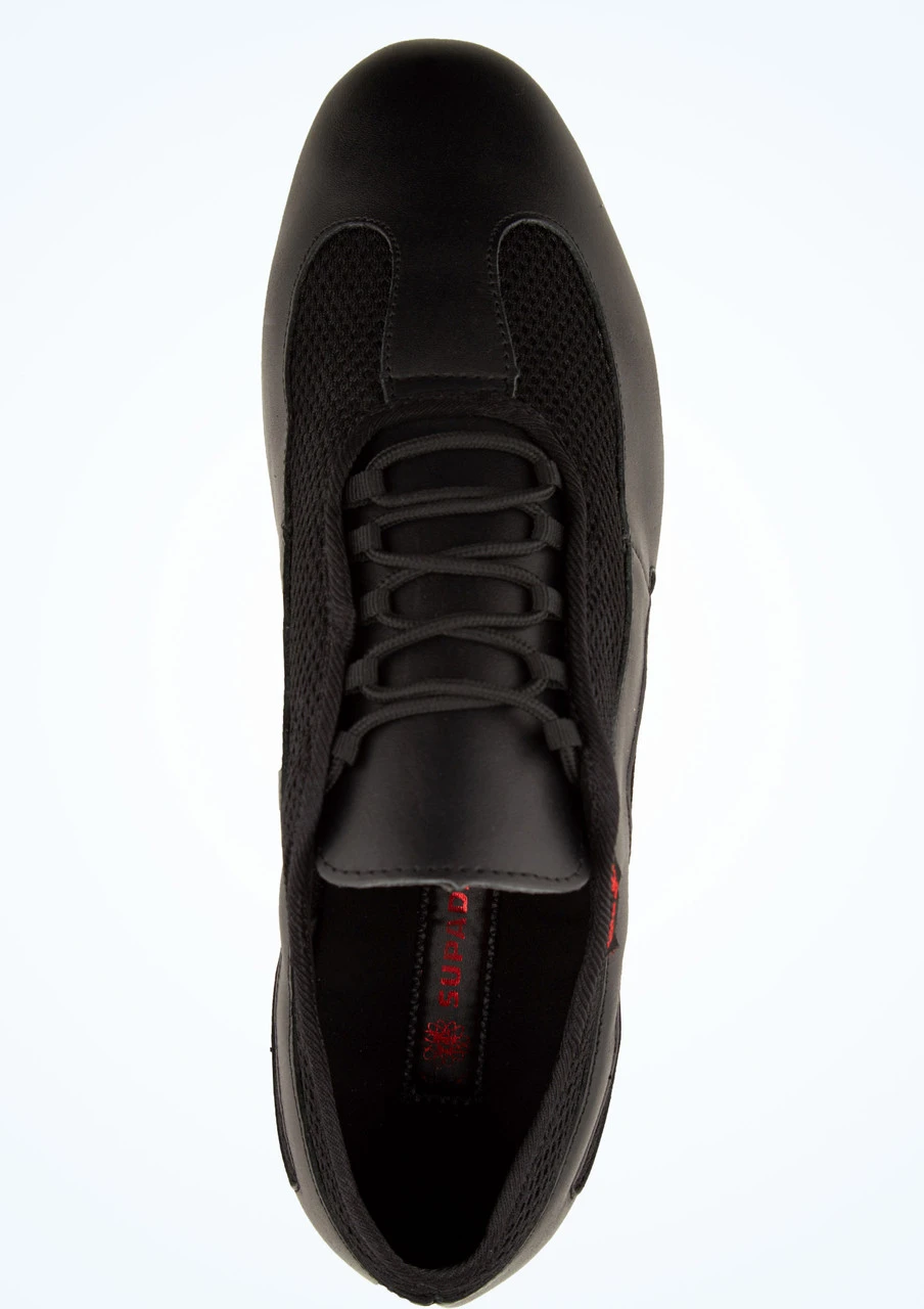 A stylish new design from Supadance. Black leather and mesh detailing creates a stylish look. Low curved heel perfect for ballroom practice and teaching. The curved heel is a new design feature where the heel curves up at the back and is cushioned in the centre, in order to help with heel leads.