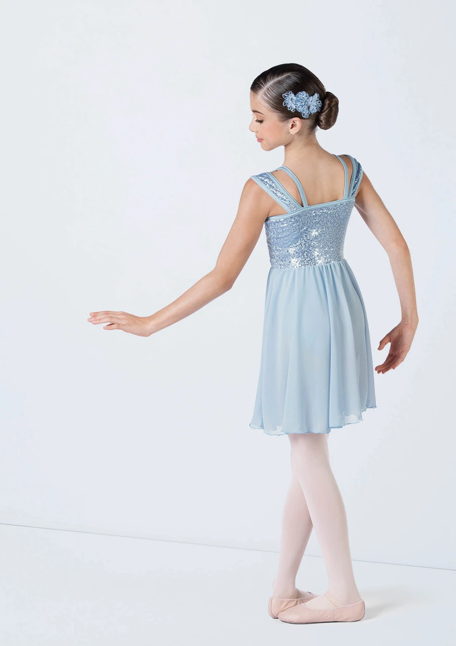 -Embroidered sequin appliqués adorn the front neckline